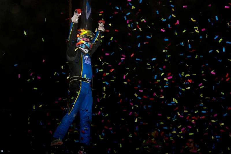 Courtney, using the lapped car as a buffer between he and Bacon, used the opportunity to escape from the pressure and close out his fourth USAC National win at a track he was visiting for the first time this season (Sprint: I-80 Speedway in Nebraska & Randolph County Raceway in Missouri and Midget: Montpelier (Ind.) Motor Speedway & the Illinois State Fairgrounds Multi-Purpose Arena). Brady Bacon took second ahead of Justin Grant, Robert Ballou and Kevin Thomas, Jr.